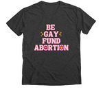 Be Gay, Fund Abortion, a Dark Grey Heather Premium V-Neck Tee