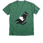 Black Cat Reads Unisex Tee (adult & youth), a Heather Grass Green Premium V-Neck Tee