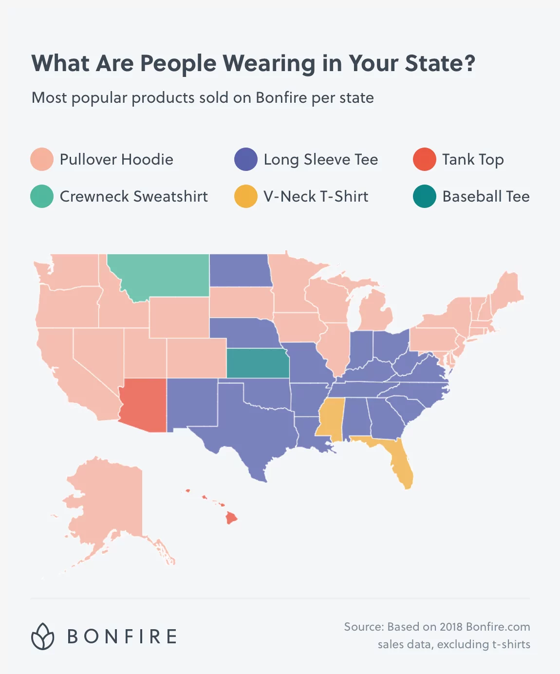 Tag us on Instagram, Facebook or Twitter if your apparel preference matches the state you live in! Is your style way different? Even better, still tag us on social media to let us know what you like to wear! We’ll update our trends data at the end of each year so you can see how your state is changing.