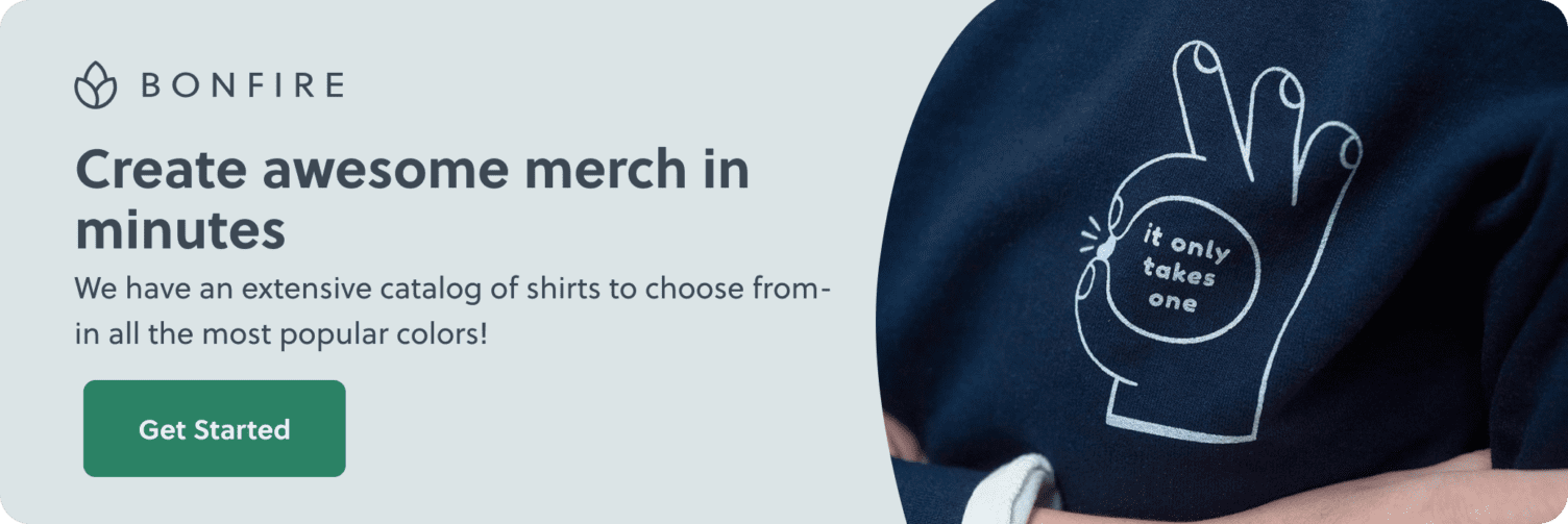 Let’s check out the most popular shirt colors we sell at Bonfire! While you don’t have to only sell these colors, we suggest ensuring you offer at least one of these colors when selling products to your community.