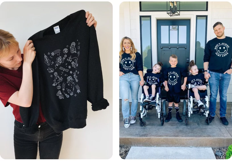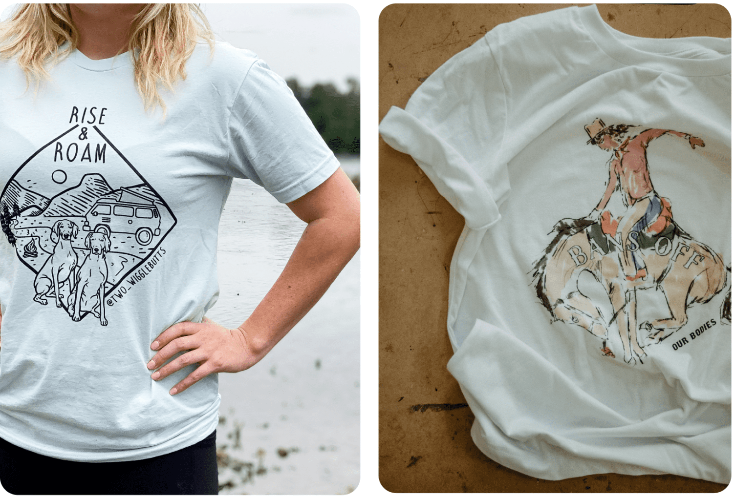 The key to creating the ultimate t-shirt is pairing neutral-colored shirts with complementary images and text. Light-colored images and text work best for black, greys, and navy. When it comes to breaking selling records and choosing shirt styles, remember that buyers are diverse. For more information on designing your shirt with the right colors, read our guide on t-shirt and ink color combinations.