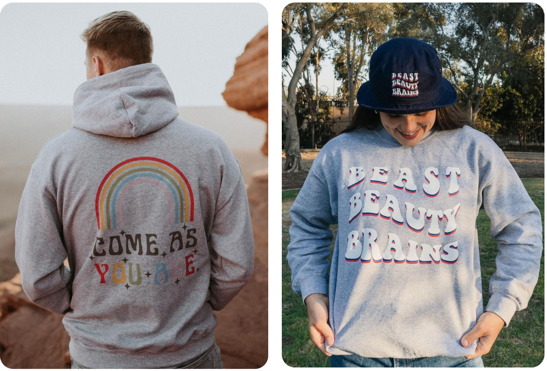 We’ve recently seen a rise in popularity of both hoodie and crewneck sweatshirts. There are a wide array of different sweatshirts in our product catalog, including new tie dye and organic french terry options!