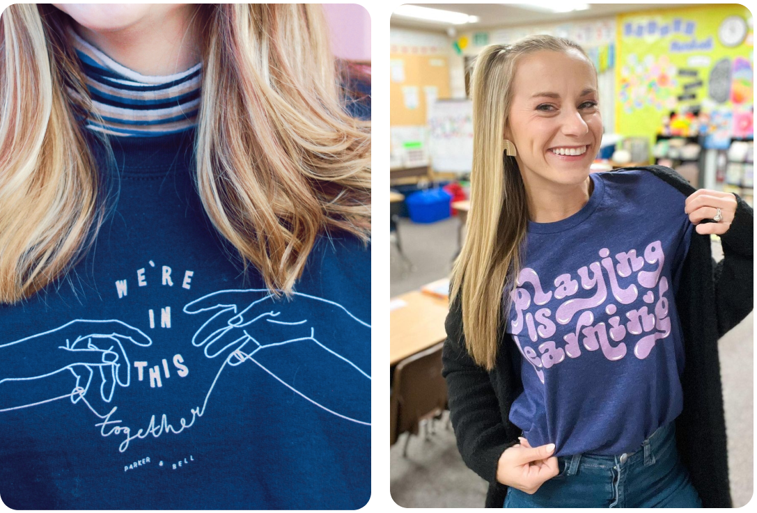 Black t-shirts are one of the most popular products we sell. They make a fantastic canvas to help your design pop, and are the perfect background for light-colored images and text. They also are easy to color match across product types and brands, so are a great option if you want your community to have a cohesive look while wearing anything from a t-shirt to a tank top or hoodie.