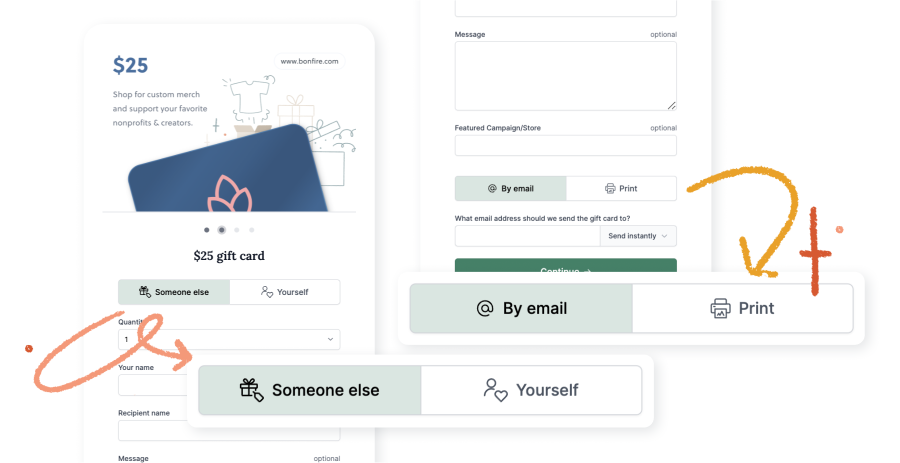 Want to suggest a specific place to shop? Drop a link to a Bonfire campaign or store in the ‘Featured Campaign/Store’ section. It’s not just a gift card; it’s a chance to make their own impact in a way that matters to them.