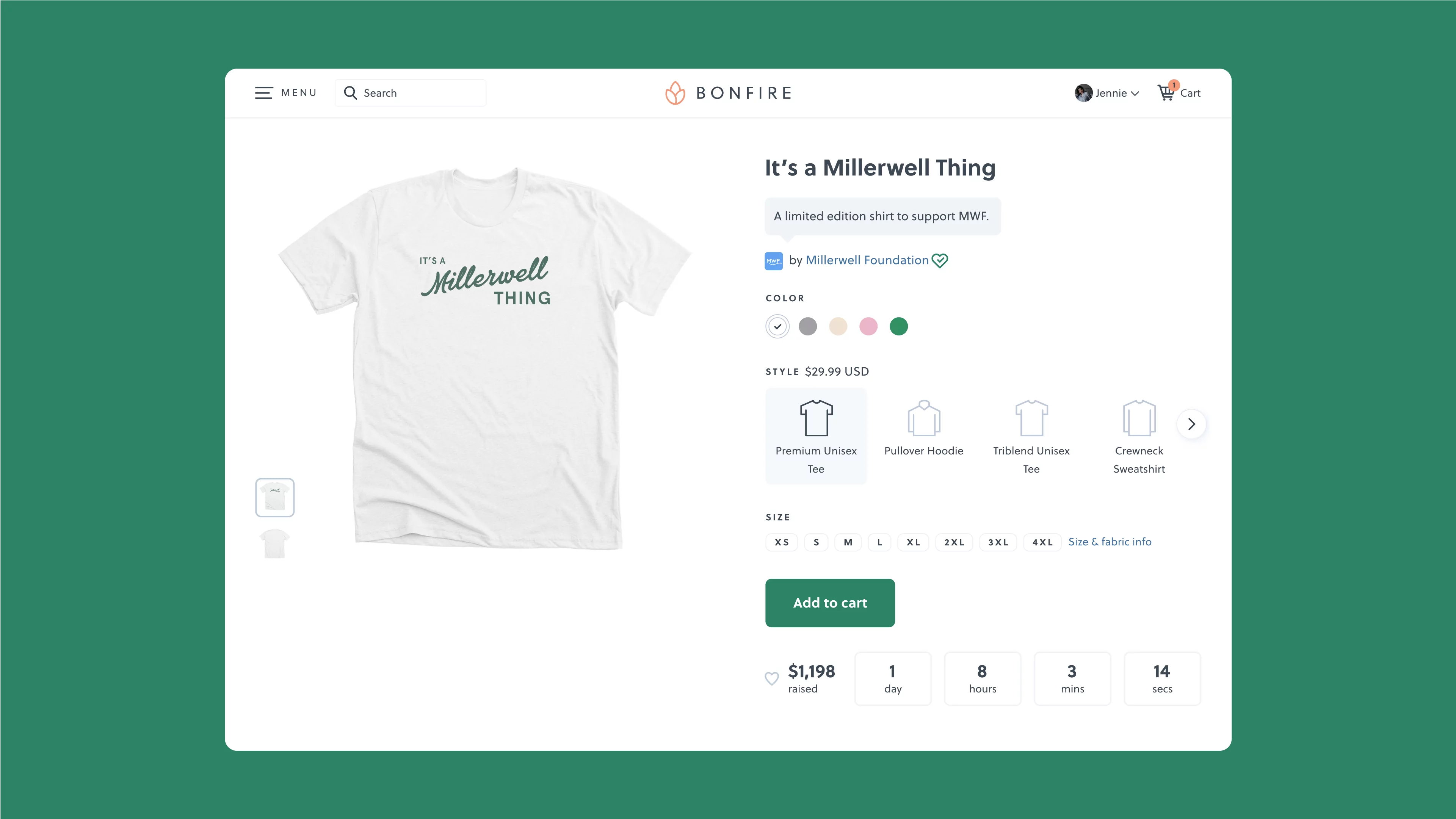 Bonfire’s mission is to strengthen communities that inspire a kinder world. The creators behind the campaigns are the true engine of our platform, and we love helping their creations come to life. Whether they are fundraising for a cause they care about, selling merch to their fans, or creating apparel for their business, we are here to help make sure their products look great!