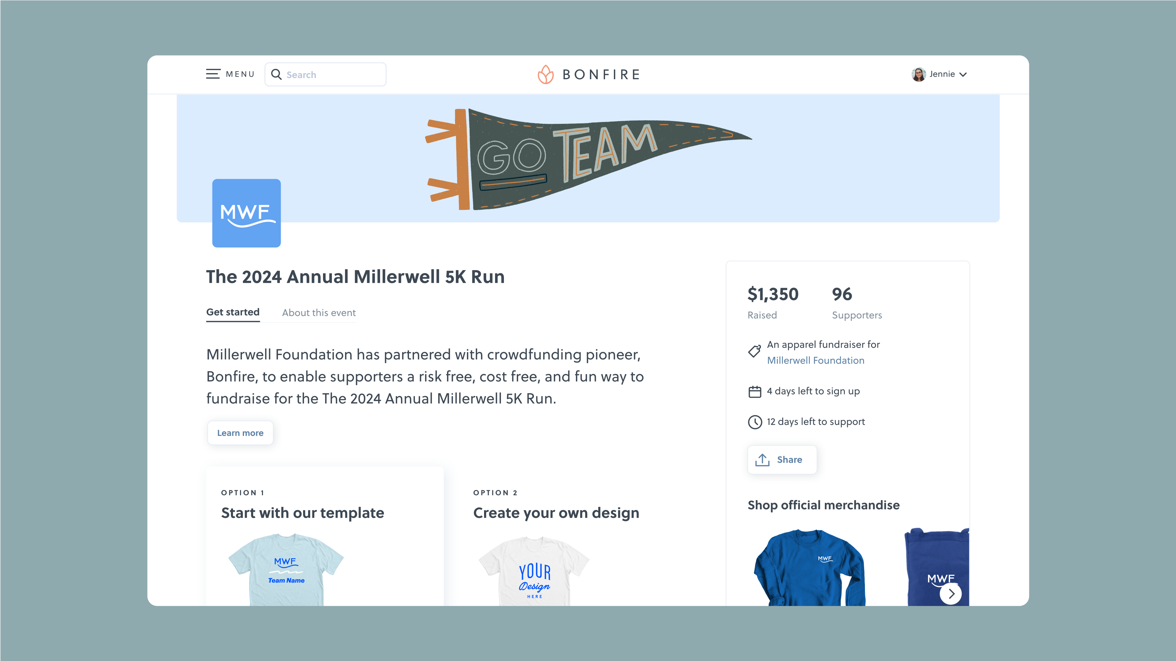 Any verified nonprofit running a Peer-to-peer event will have access to a customizable page to share with supporters. On this page, you’ll find all of the official details about the event, a leaderboard to show the best-selling campaigns, and more.