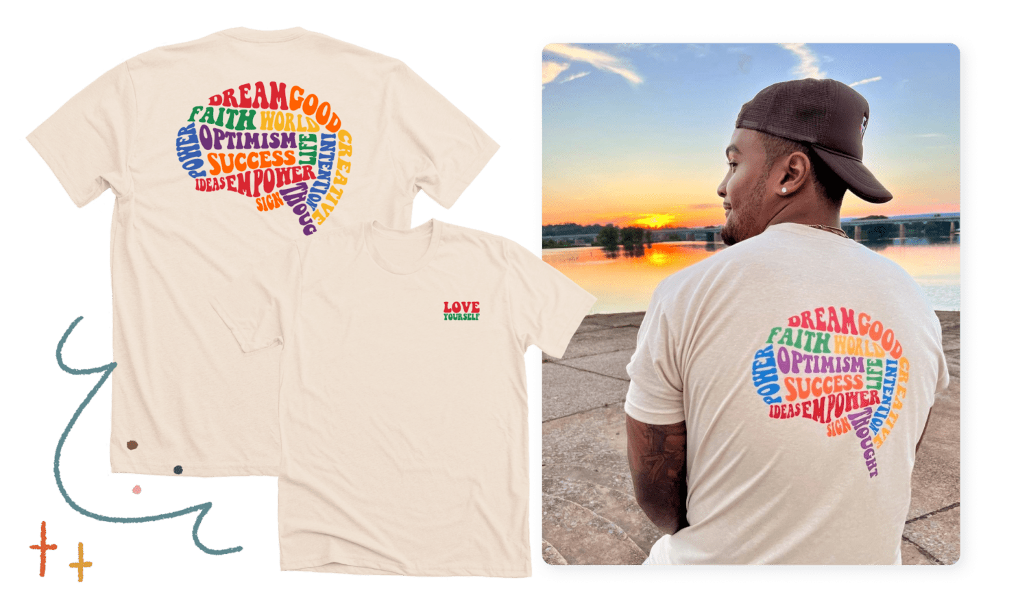 The Love Yourself campaign was started by content creator and athlete, Tayvon Bowers (@tayvonbowers) to help encourage conversations about mental health. Tayvon hopes to tear down the walls of toxic masculinity that can oftentimes keep men from getting the help they need when it comes to emotional wellness. This shirt is helping to spread awareness about the importance of mental health for everyone.