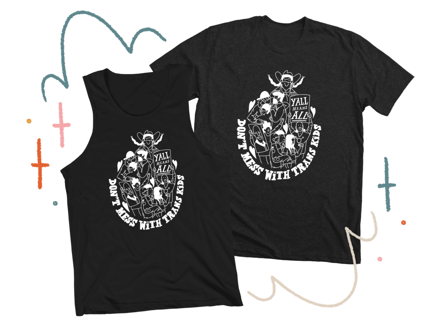 Be sure to follow Don’t Mess With Trans Kids on Instagram, learn more about Texas Pride Impact Funds, and check out the DMWTK’s online store to support their campaigns.