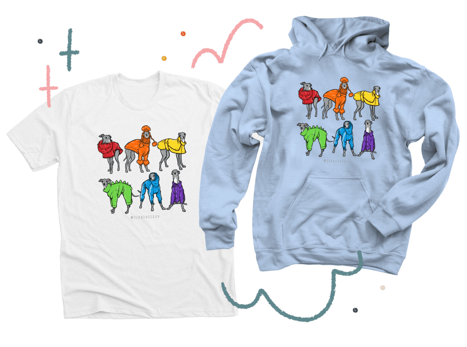 Tika The Iggy, an Italian greyhound who lives in Canada with her Dads; Thomas and Louis, is a fashion icon, pet celebrity, and viral internet sensation. The Tika Pride campaign was created to raise money for Rainbow Railroad, a nonprofit organization that helps LGTBQI+ people facing persecution based on their sexual orientation, gender identity, and sex characteristics. Since their founding, they’ve helped over 3,100 LGBTQI+ individuals find safety through emergency relocation and other forms of assistance. 50% of proceeds from this campaign will go directly to Rainbow Railroad.