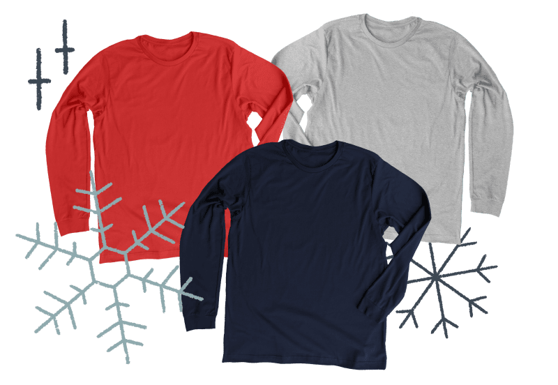 Some days call for long sleeves and layers – and we’re here to help make sure you’ve got enough long sleeve options to get through the winter.