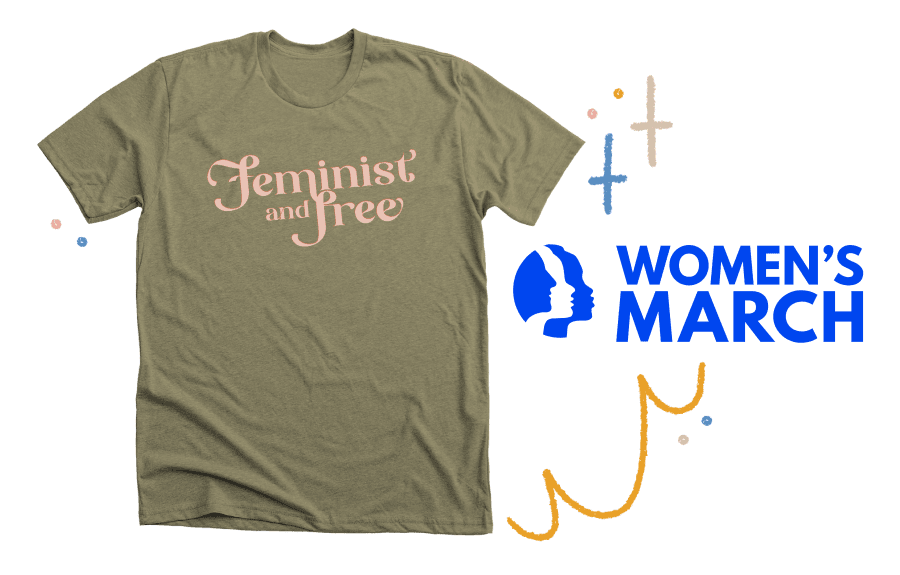 The mission of Women’s March is to harness the political power of diverse women and their communities to create transformative social change. They do this by providing intersectional education on a diverse range of issues and creating entry points for new grassroots activists & organizers to engage in their local communities through trainings, outreach programs and events. The Feminist and Free design was created by Women’s March for their Bigger Than Roe March which took place on January 22, 2023 (the 50th anniversary of Roe vs Wade) and consisted of unified marches all over the country. This design is still available and continues to support the never-ending mission and incredible important work of Women’s March.