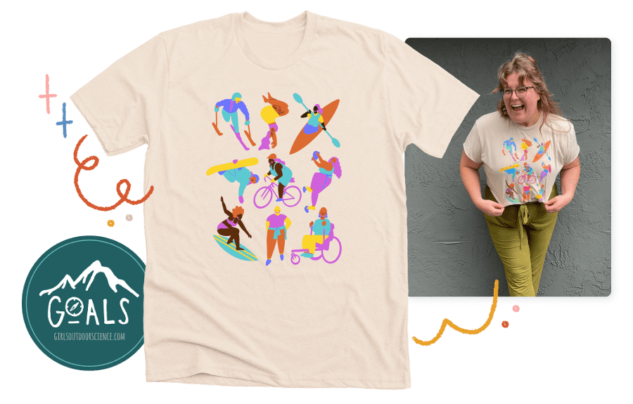 Multimedia artist Olivia Chase created the Inclusive Outdoors! campaign to support Girls’ Outdoor Adventure in Leadership and Science, a free summer science program for high school girls and gender expansive youth to learn science hands-on. Participants in GOALS engage in citizen science and independent research as well as lessons in leadership and outdoors skills.