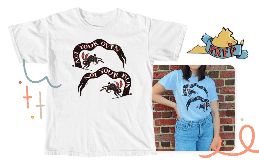 Hazel Cimino designed and created the Not Your Bun campaign and is donating 100% of the proceeds to Richmond Reproductive Freedom Project, Virginia’s grassroots abortion fund. RRFP provides practical and financial support for abortion services in Virginia and surrounding communities.