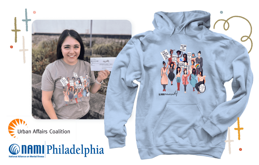 The Strong Women, Strong Voices campaign from NAMI Philadelphia is fundraising for Urban Affairs Coalition, a home for nonprofits in the Greater Philadelphia region. The Urban Affairs Coalition unites government, business, neighborhoods, and individual initiatives to improve the quality of life in the region, build wealth in urban communities, and solve emerging issues. Original artwork for this campaign was created by one of NAMI Philly’s Board Members, Volunteers, and Mental Health Advocates, Komal Gulati.