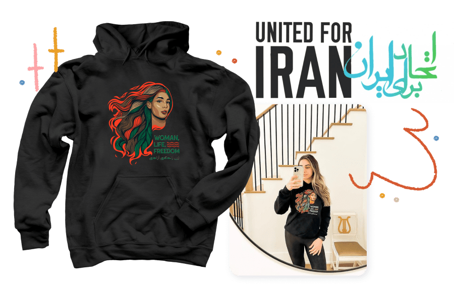 The Woman, Life, Freedom campaign was created by Human Rights Activist, Elica Le Bon to raise funds for United for Iran, an independent nonprofit organization based in the San Francisco Bay Area that works for civil liberties in Iran. United for Iran strives to improve human rights conditions, increase the capacity of civil society, and engage citizens through technology.