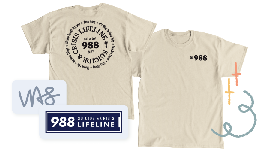 When you purchase a shirt from this campaign, you are helping to spread the word about 988 Suicide and Crisis Lifeline – a free, 24/7, confidential national network that provides support for people in distress, prevention and crisis resources, and best practices for professionals in the United States.