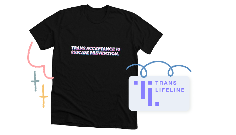 The Trans Acceptance is Suicide Prevention campaign was designed by Aedy Miller to raise funds for Trans Lifeline, a trans-led grassroots hotline and nonprofit organization that offers direct emotional and financial support to trans people in crisis.