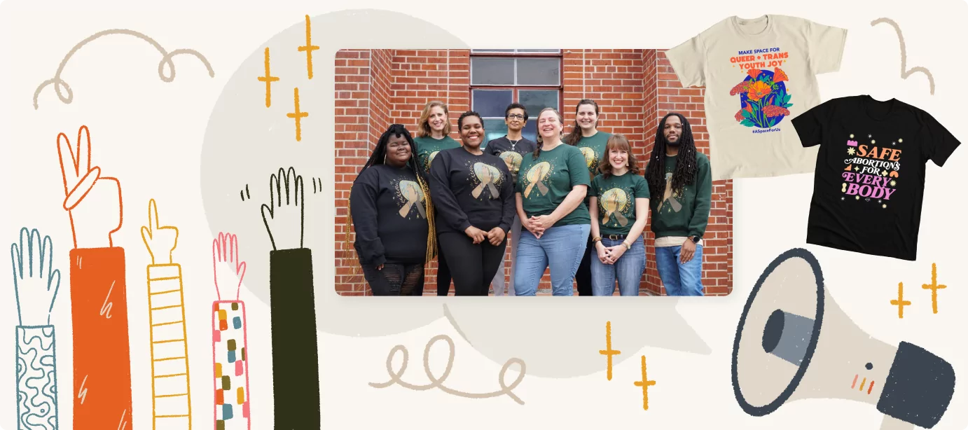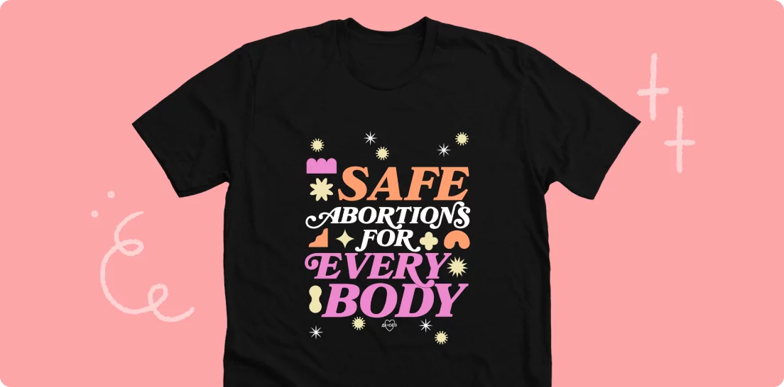 The Safe Abortions for Every Body campaign by artist duo, Ash+Chess donates 100% of proceeds to the National Network of Abortion Funds, an organization that works to remove financial and logistical barriers to abortion access by centering people who have abortions and organizing at the intersections of racial, economic, and reproductive justice. Buying this tee helps provide much needed support and abortion access for everyone!