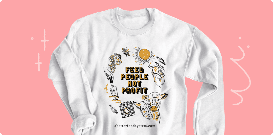 The A Better Food System Is Possible campaign is donating all their proceeds to the Public Justice Foundation, an organization that pursues high impact lawsuits to combat social and economic injustice, protect the Earth’s sustainability, and challenge predatory corporate conduct and government abuses. Buying this crewneck sweatshirt helps the Public Justice Foundation fight against reckless polluters, unscrupulous payday lenders, unjust employers, punitive credit card companies, inhumane government detention centers, dangerous food producers, and more!