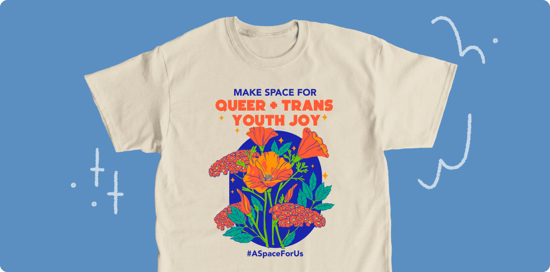 The A Space for Us campaign was created by Metamorph Mentorship, a collective of LGBTQ+ mentors and artists committed to supporting queer and trans youth and allies. Buying this tee helps support the making of their film about queer and trans youth joy!