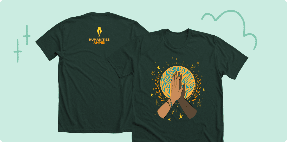 The All Flourishing is Mutual campaign donates 100% of proceeds to Humanities Amped, an organization whose vision is to build an innovative and dynamic community of lifelong learners and civic leaders, and whose mission is to empower public school communities and youth organizations to cultivate healing justice, radical imagination, and beloved community. Buying this tee helps support the Amped Studio Afterschool program, where kids get help in academics, gain leadership experience, and find healing in restorative circles.