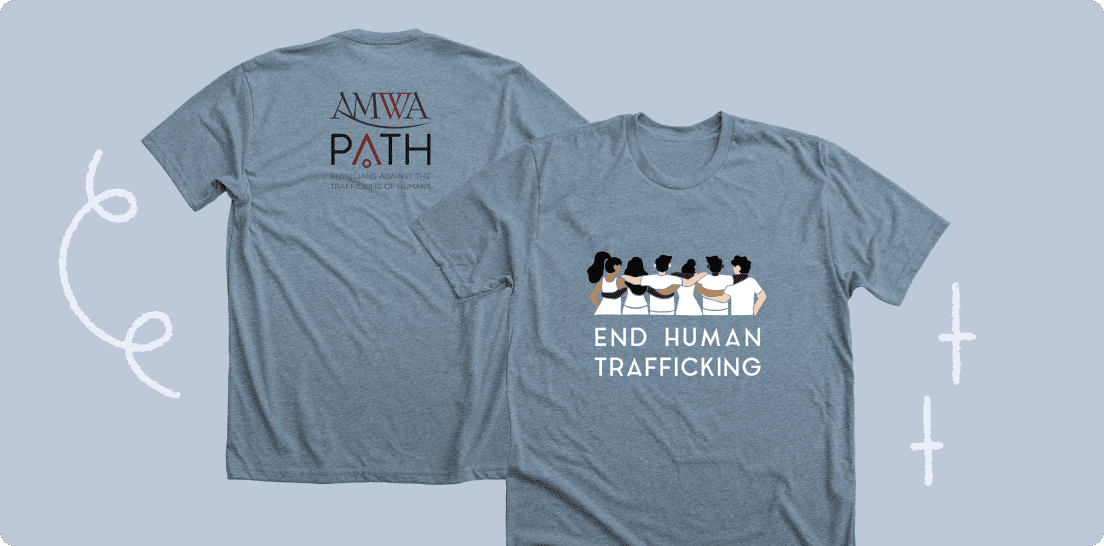 The End Human Trafficking campaign was made by Rachel Geiser to benefit the American Medical Women’s Association, whose PATH (Physicians Against the Trafficking of Humans) program works to train healthcare providers about human trafficking. Buying this tee helps fund their efforts to identify, fight, and end human trafficking.