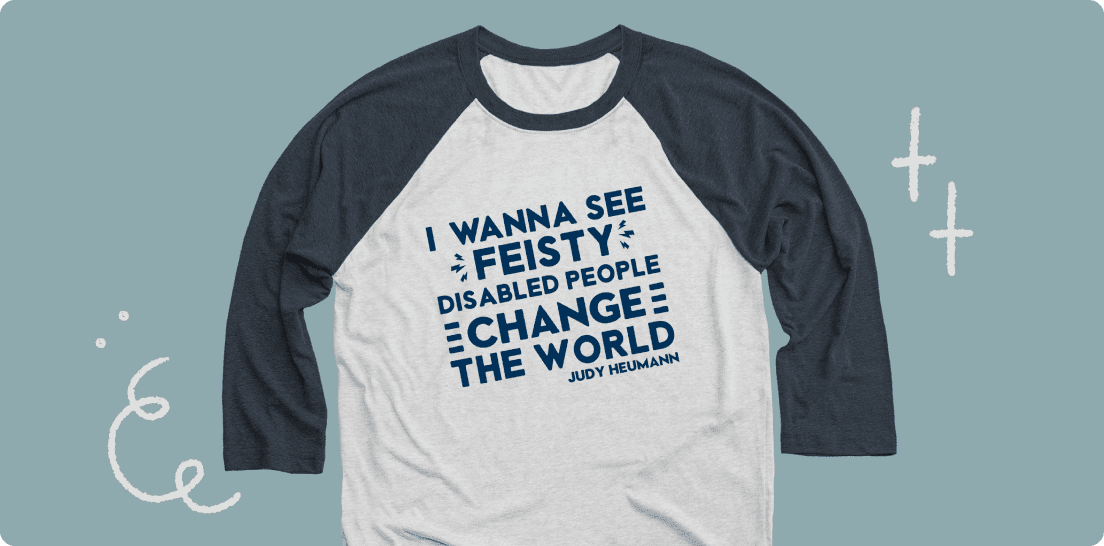 The I Wanna See Feisty Disabled People Change the World campaign by International Disability Rights Activist, Judy Heumann is raising funds for the American Association of People with Disabilities (AADP), an organization that aims to improve the lives of people with disabilities by increasing their political and economic power. Buying this baseball tee helps promote disability rights and pride!