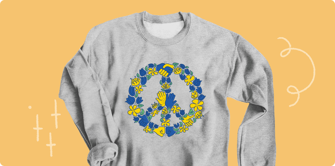 The Peace for Ukraine campaign was made by EXIST Design Studio to fundraise for CARE, the leading humanitarian organization fighting global poverty. Buying this crewneck sweatshirt helps CARE provide emergency critical aid to those affected by the war in Ukraine.