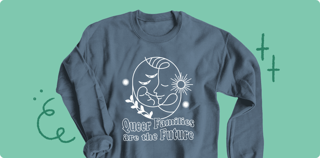 The Queer Families Are the Future campaign supports Intersectional Fertility, an organization that offers reproductive healthcare for folks with wombs. Buying this crewneck sweatshirt helps fund The Intersectional Fertility Podcast, recorded fertility webinars, and their 5-week online program, Fertile!