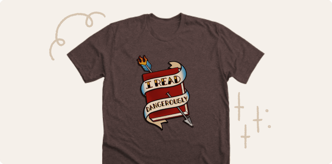 The I Read Dangerously campaign was created by the American Booksellers Association and benefits their Free Expression Initiative, which works to ensure that core member bookstores have the resources they need in support of their right to freedom of expression and that legal and regulatory policies reflect the interests of independent bookstores. Buying this tee helps to ensure the success and profitability of independent bookstores and lets people know you read banned books!