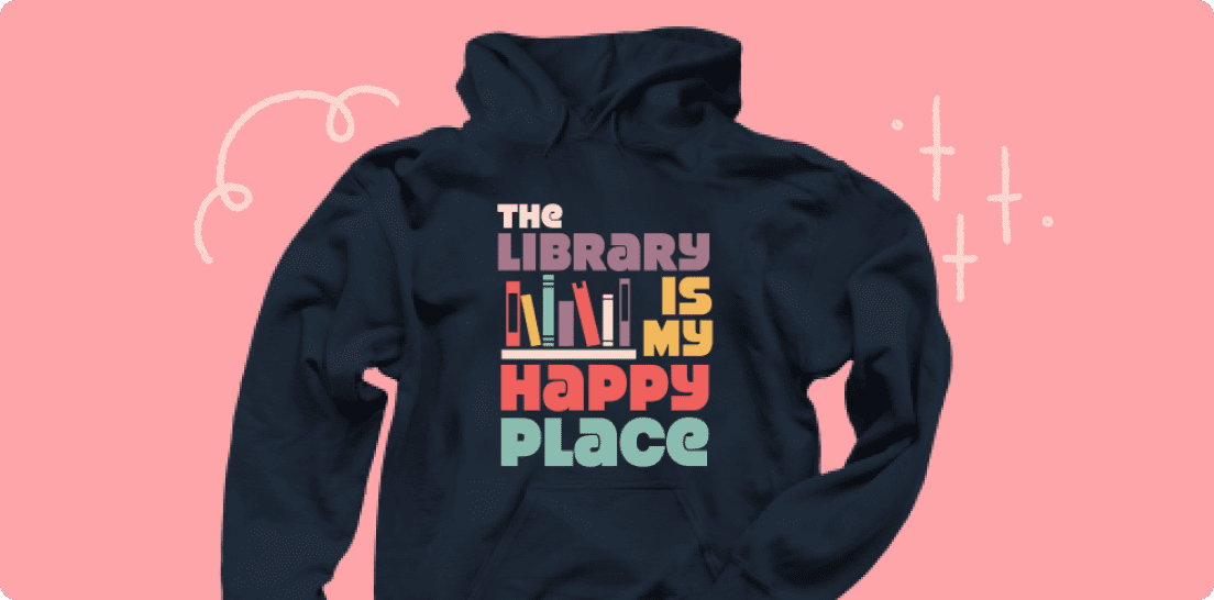 The campaign for The Library is My Happy Place was created by designer Kevin Boone of Lady Gray Design to benefit Gretna Friends of the Library, a public library in Nebraska. Buying this crewneck sweatshirt helps spread the word about how awesome libraries are and helps to support one!