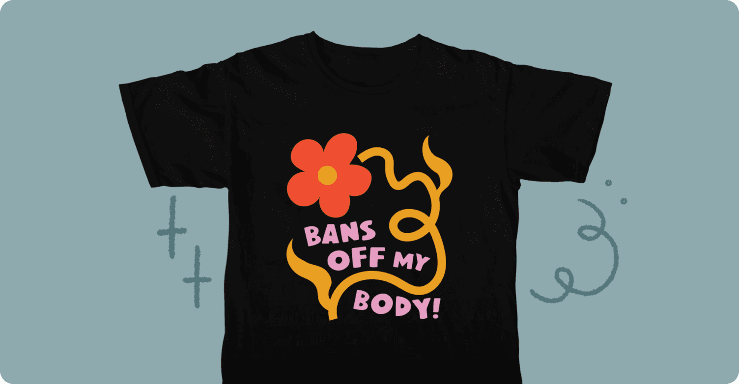 The Bans Off My Body campaign from Women Uprising, a collaboration between 3 women owned businesses (Fenomenal, Wild Rose, and Superfrau) is raising funds for the Texas Equal Access Fund (part of the National Network of Abortion Funds). Buying this tee helps folks in Texas have access to safe abortion care and support!