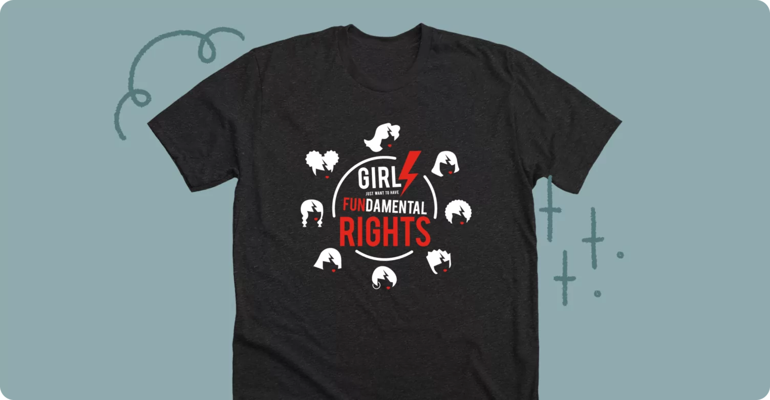 The Girls Just Want to Have Fundamental Rights campaign benefits the Tides Foundation, an organization that accelerates the pace of social change, working with innovative partners to solve society’s toughest problems. Buying this tee supports the Tides Foundation’s mission to create a world of shared prosperity and social justice!