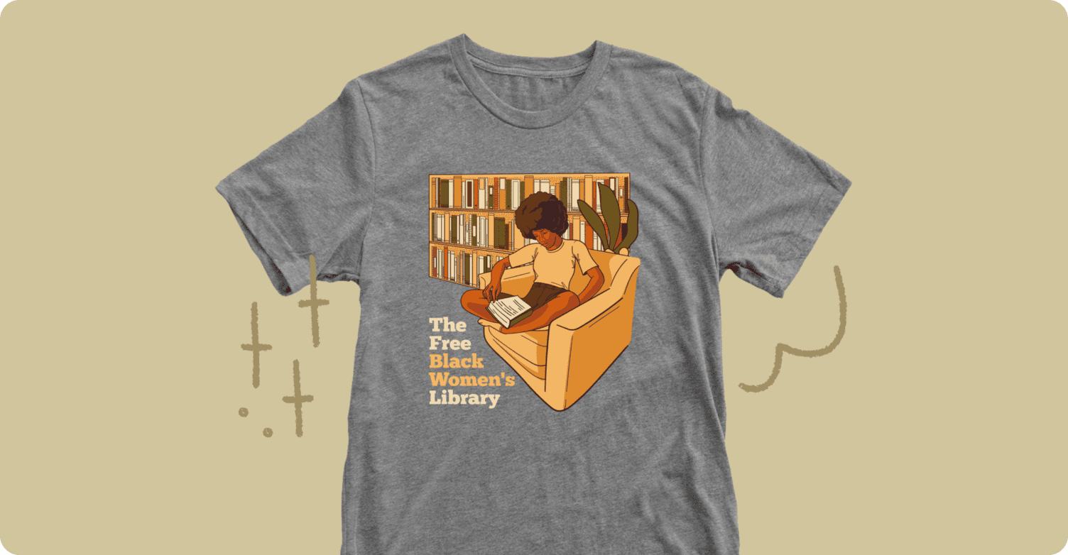 The Free Black Women’s Library campaign directly benefits The Free Black Women’s Library, a social art project that features a collection of over 4000 books written by Black women, as well as workshops, readings, film screenings, & critical conversations. Buying this tee helps The Free Black Library fundraise for the opening of their Reading Room in Bedford Stuyvesant, Brooklyn that will serve the community as a literary hub and creative co-working space!