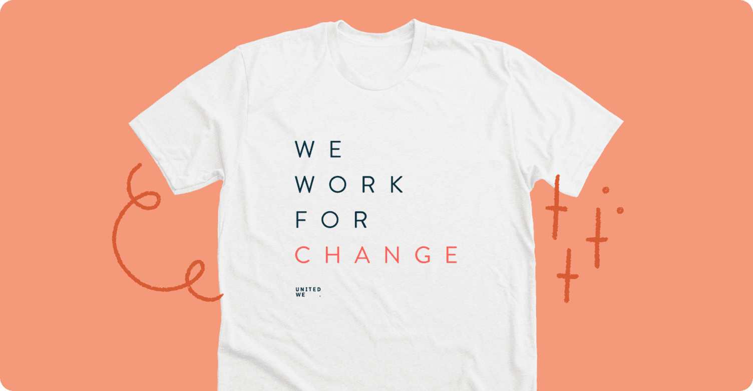 The We Work for Change campaign supports United WE, an organization committed to making advances for all women in economic and civil leadership. Buying this tee helps United WE work towards a more gender-equitable world!