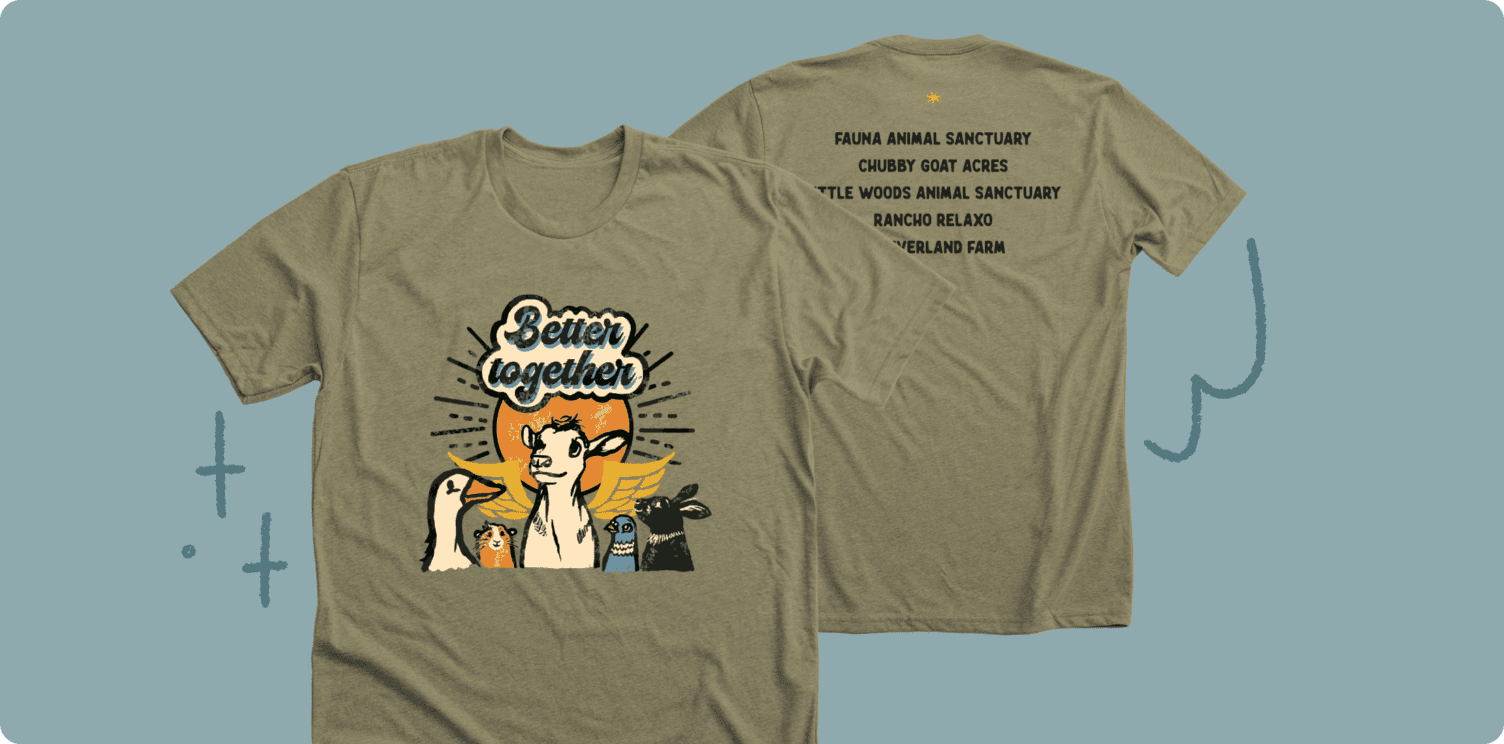 The Better Together campaign directly benefits the Foreverland Farm, a nonprofit animal sanctuary located in Southern Ohio. Buying this tee helps fund their mission to provide a permanent, safe home and daily care for the most vulnerable animals, including those abandoned, abused, neglected and slaughter-bound, while sharing their stories of survival and perseverance to create a more compassionate community!