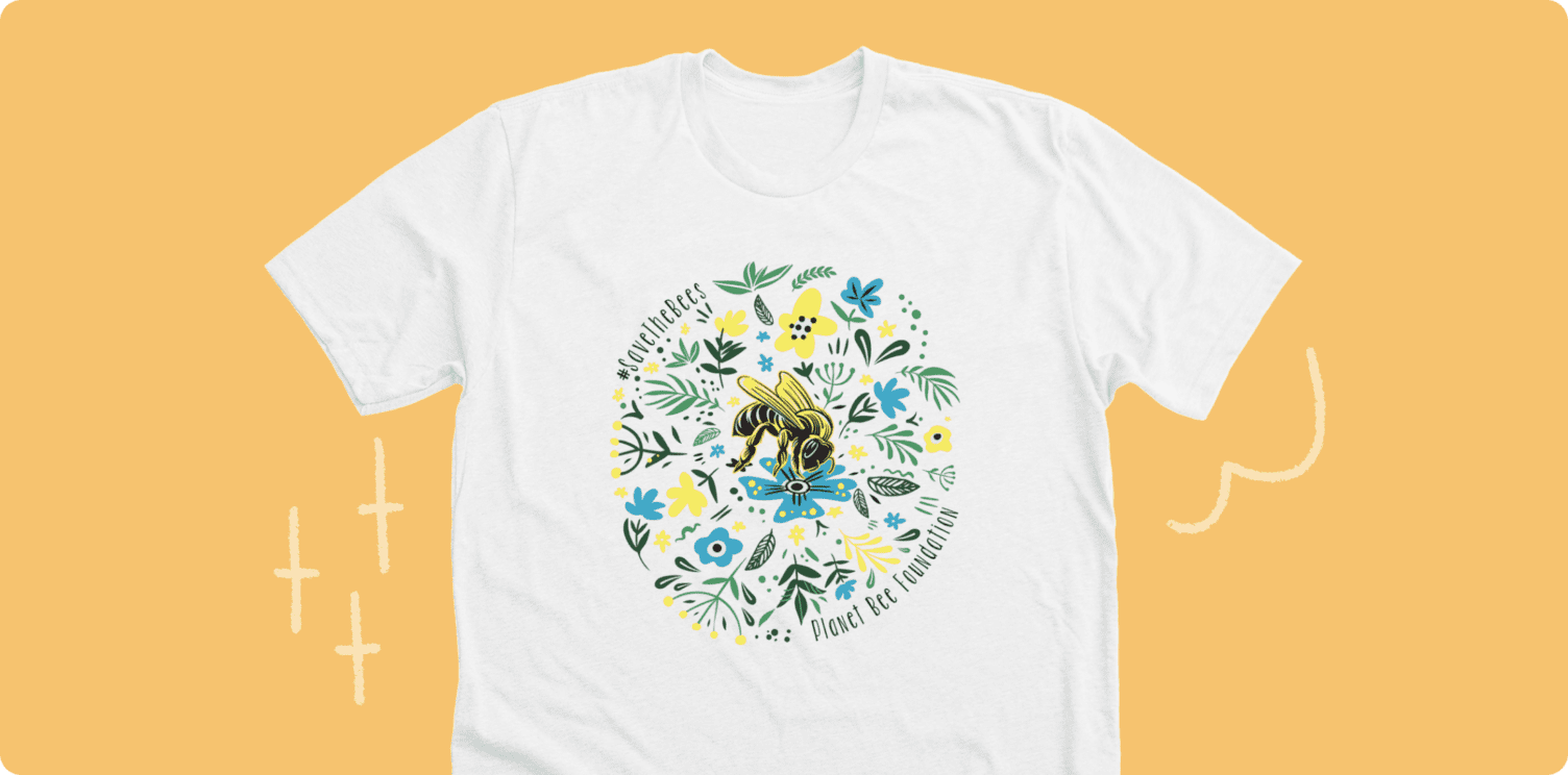 The Planet Bee Foundation: Bees and Flowers campaign supports the Planet Bee Foundation, an organization that works with schools, nonprofits, summer camps, environmental centers, community gardens and businesses to build long lasting care of the struggling honey bee and the environment by presenting hands-on, educational workshops on location. Buying this tee helps the Planet Bee Foundation change the world – one bee and one mind at a time!