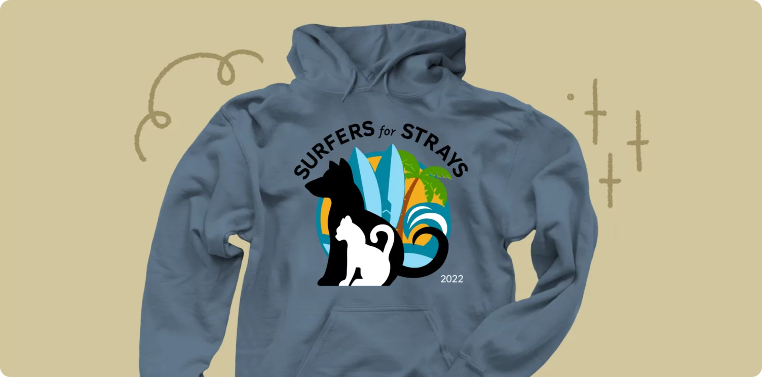 The Surfers for Strays campaign directly benefits Surfers for Strays Inc, an all-volunteer non-profit organization that reduces the number of stray animals in Mexico through spay and neuter programs. Buying this pullover hoodie helps Surfers for Strays raise awareness for the humane treatment of neglected animals through education, rehabilitation and adoption programs!