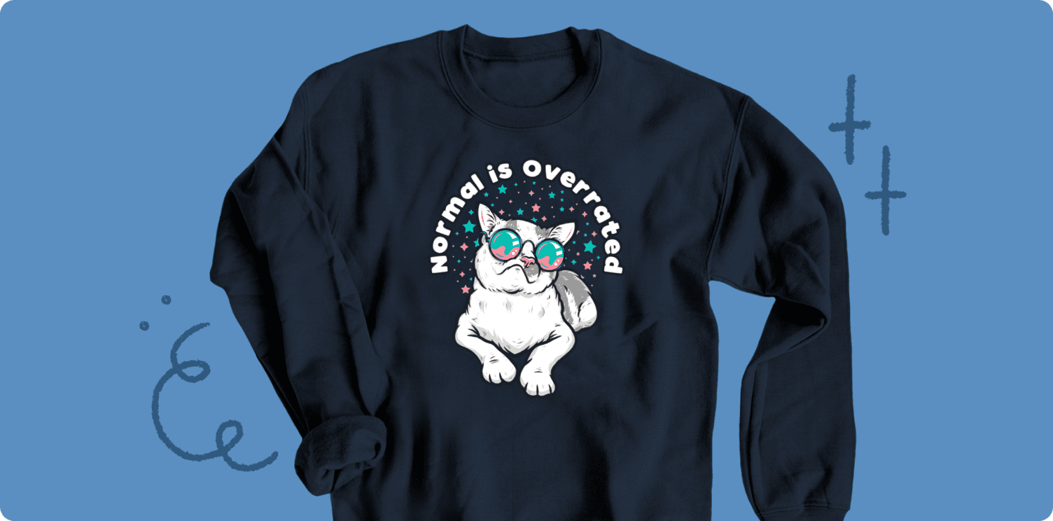 The Normal is Overrated campaign by Friends for Life Rescue Network, is helping to raise funds for their rescue. Buying this crewneck sweatshirt helps with medical costs for a special cat named Pinocchio who is currently in their care.