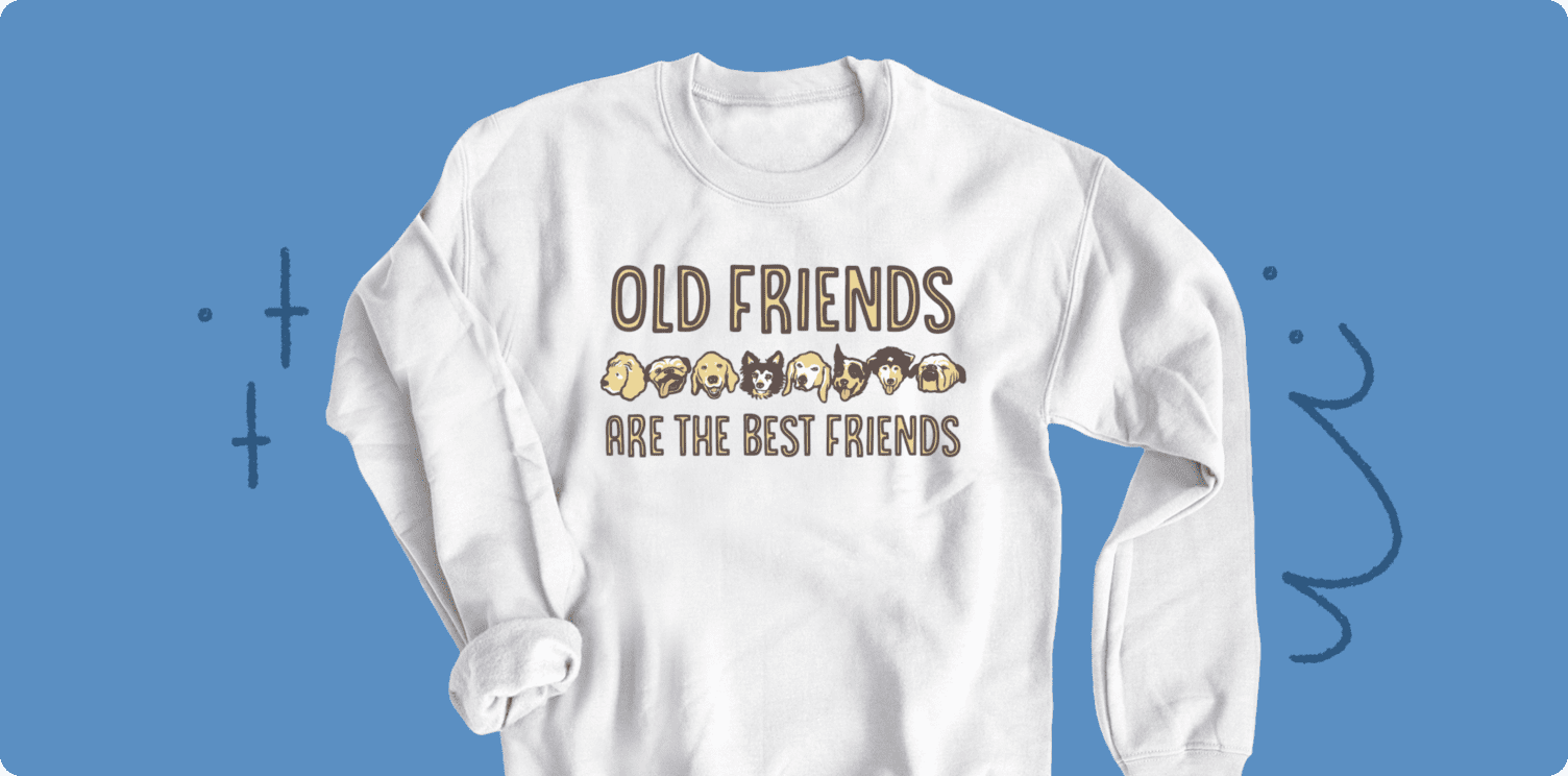 The Old Friends Are the Best Friends campaign was created by Old Friends Senior Dogs, a sanctuary whose mission is to provide a loving home, good food, high quality vet care, compassion, and comfort to senior dogs for the remainder of their lives. Buying this crewneck sweatshirt helps promote the adoption and care of senior dogs!