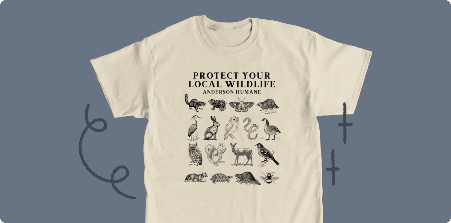 The Protect Your Local Wildlife campaign benefits the Anderson Animal Shelter, whose mission is to bring people and animals together for good by creating and supporting mutually beneficial relationships between the two. For every shirt or sweatshirt purchased from the Protect Your Local Wildlife Campaign, $10 will be donated directly to Anderson Humane!