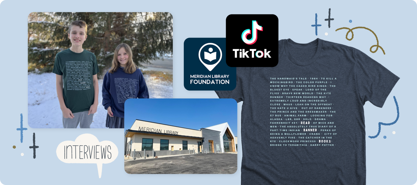 The Meridian Library Foundation caught our attention at the end of last year when sales from their Read Banned Books campaign on Bonfire suddenly skyrocketed – seemingly out of nowhere. Their campaign had gone viral, thanks to a TikTok, and was receiving an unprecedented amount of support from all over the world. Within a matter of days they had raised enough proceeds from shirt sales and donations to FULLY FUND the construction of the Early Literacy & Sensory Installations at their new library branch. Needless to say, this is a fundraising success story for the books – and it’s not even finished yet.