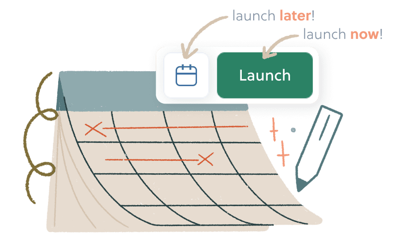When it’s time to launch your campaign – you have two options to choose from: you can launch your campaign now (as soon as you’re done creating it) or you can schedule to launch your campaign at a later date. Both are great options, so choose whichever one works best for you!