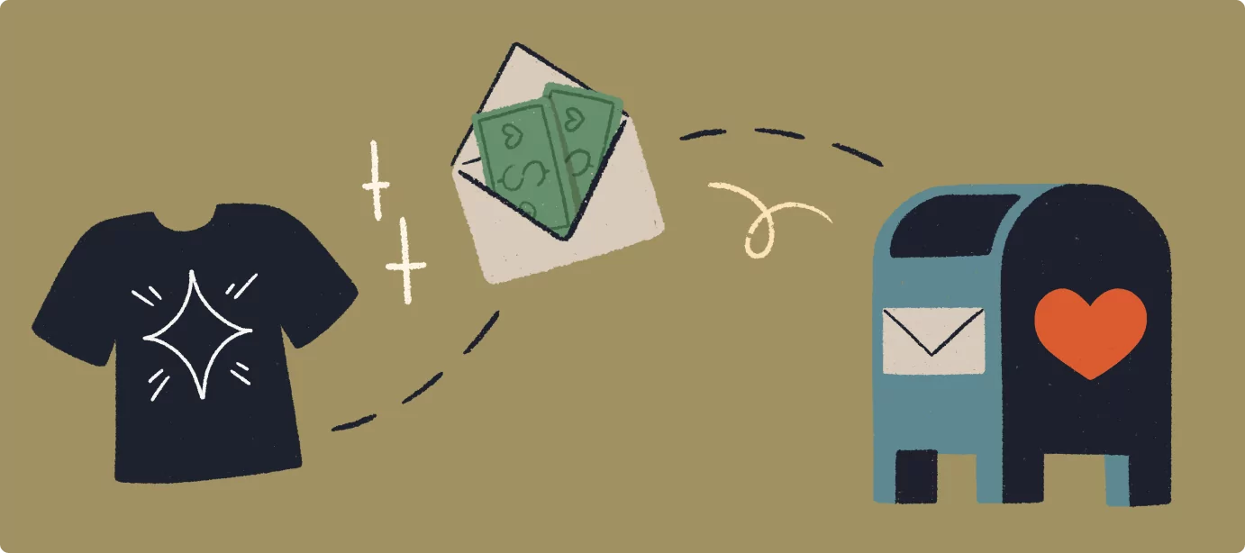 Ask buyers to share photos of themselves rocking your merch. You could even create a specific hashtag for your fundraiser if you wanted to and ask your buyers to include it in their posts. If they give their consent, re-share their photos and posts to celebrate them and show your gratitude! It also helps to get more people excited about supporting your campaign if they see your merch being worn and loved.