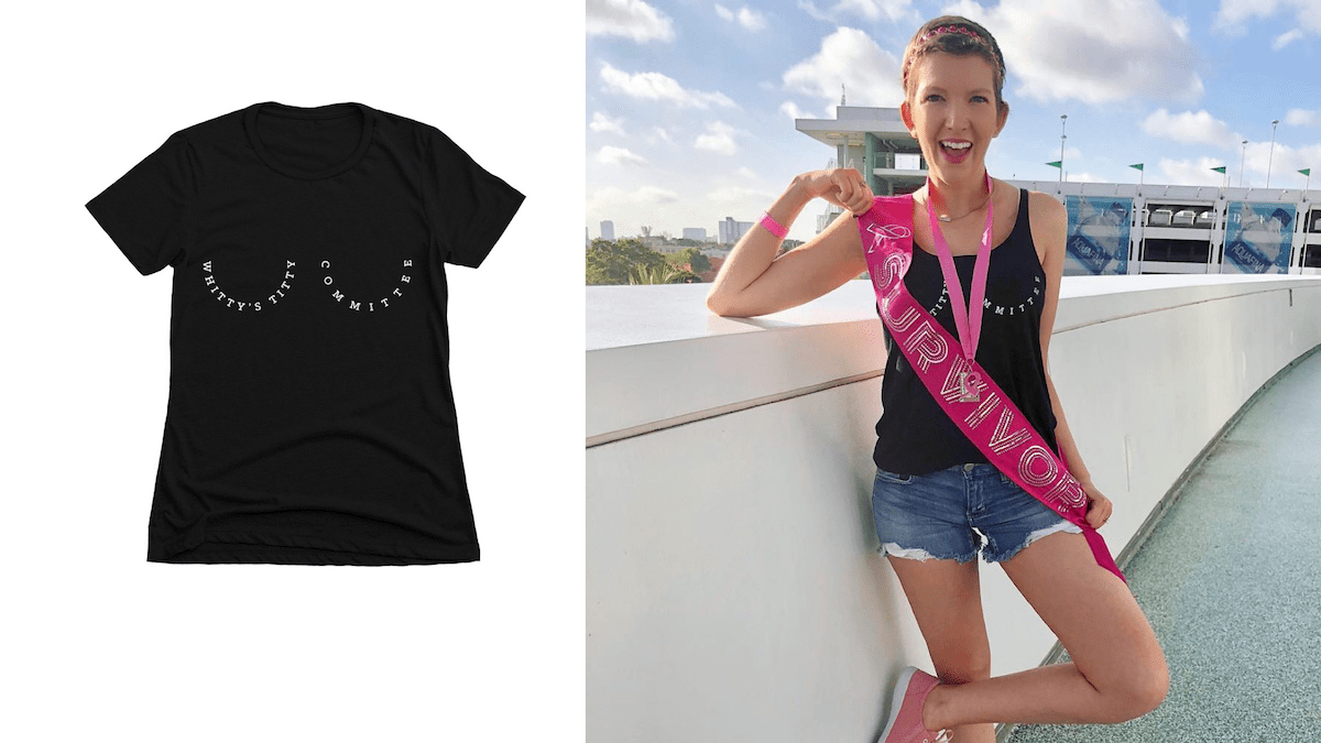 Alexandria Whitaker was diagnosed with breast cancer at the age of 24. In the midst of this diagnosis, instead of keeping this experience private, she chose to share her journey with the world. By being willing to talk about her experience, she’s become a resource to other young women diagnosed with breast cancer. She has now become the leader of a local group for women who’ve experienced breast or reproductive cancers. We admire Alex’s openness about every stage of her breast cancer experience, and her rallying cry for better preventative education. She created her Whitty’s Titty Committee Tee as a way to provide her friends and family with a way to support her, and raise money for breast cancer research, too.