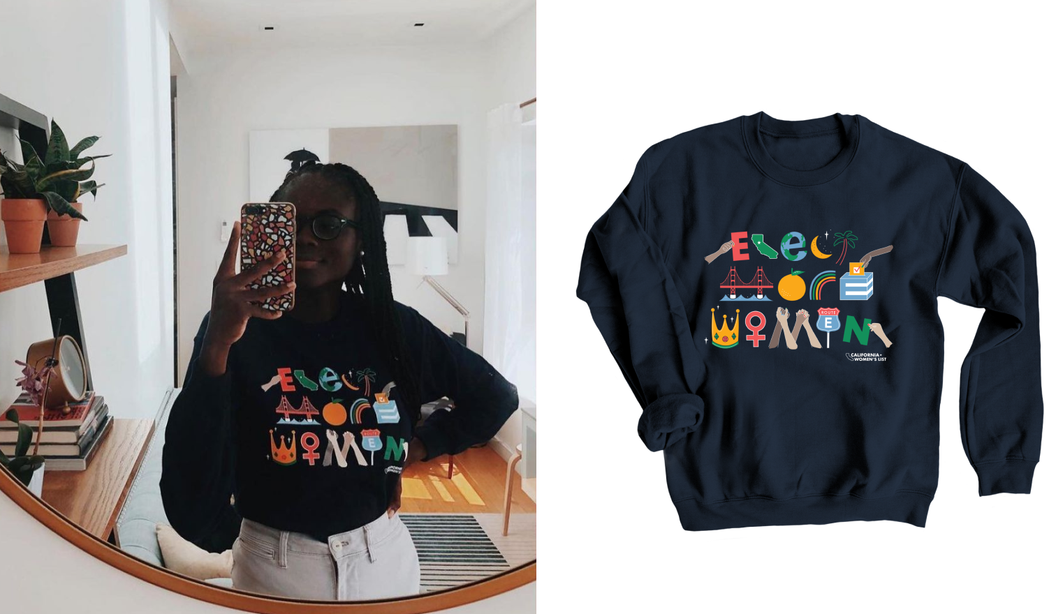 California Women’s List is an organization focused on fundraising for, supporting, and electing pro-choice Democratic women in California. As a Political Action Committee, they strive to create an equal representation of women in office, in a state where less than 1/3rd of the state legislature is currently female. Because they are a volunteer-run organization, fundraising is a huge part of their mission! The Elect More Women apparel supported their endorsed candidates during uncertain times.
