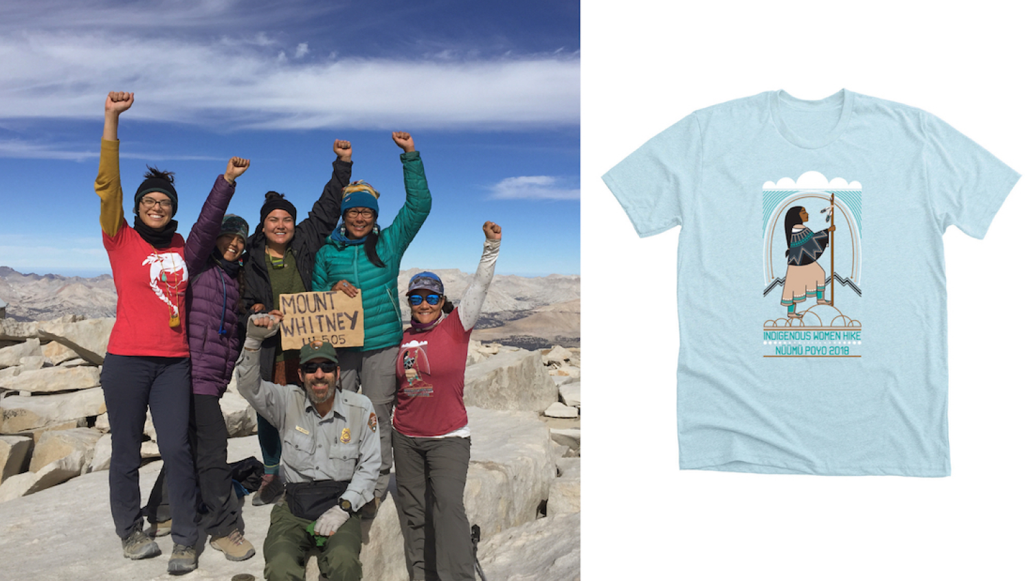 Jolie Varela is a citizen of the Nüümü and Yokut Nations. She was raised in Payahuunadü on the Bishop Indian Reservation. This area has terribly high rates of sexual abuse and suicide, and Jolie is a survivor. She started to connect to her homelands, using hiking as a channel, in her 20’s. Hiking helped to heal her from the inside out, and now she has created Indigenous Women Hike to help other women connect to the land and heal, both mentally and spiritually, just like her. The t-shirts her community creates help them remember the journeys they take together.