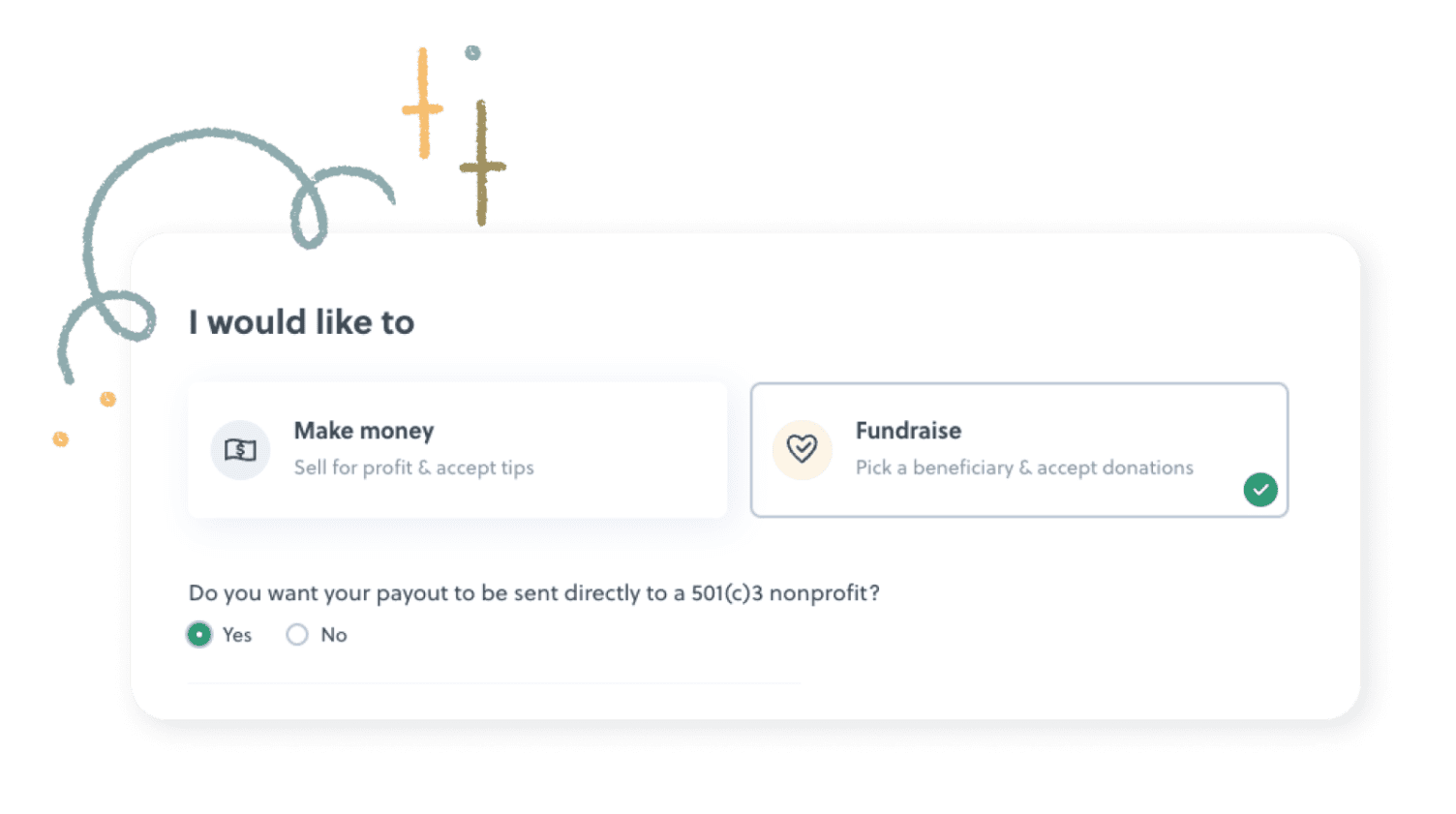 Once you design your shirt and set your prices, simply set your campaign type to “Fundraising”, and select that you wish to send your payout directly to a 501(c)3 of your choice.