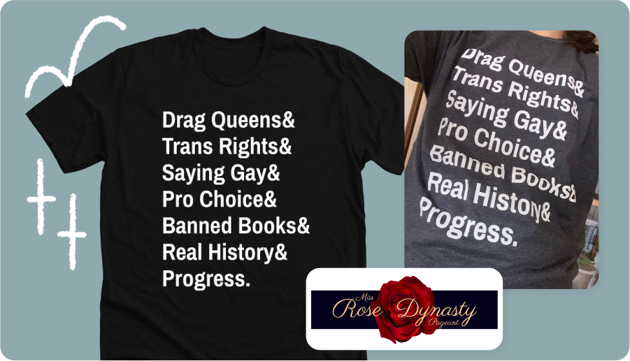 Proceeds from this campaign helps support The Rose Dynasty Foundation’s programs and events. “Wearing this shirt while you’re out and about is an easy way to show your marginalized neighbors that you see them and they are not alone.”