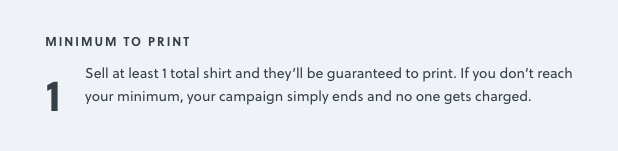 We’ve removed sales minimums for most products — moving forward, as long as you sell at least 1 product in your campaign, it will go to print! Some exclusions apply.